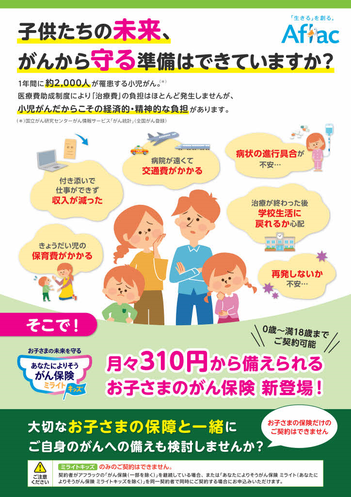 お子さまの未来お守るため親子で備える「あなたによりそうがん保険ミライトキッズ」