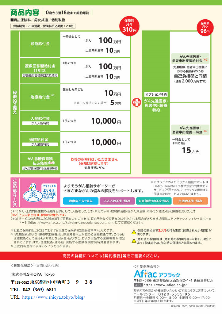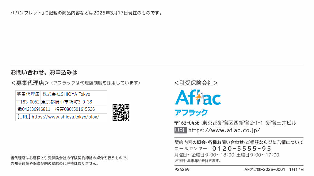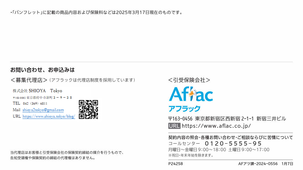 詳しくは、下記のアフラック専属代理店へお電話でお問い合わせください。