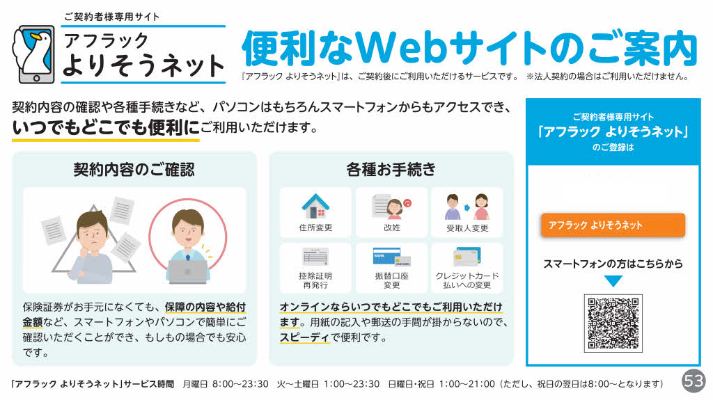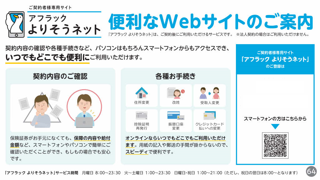 ここでは保険(プラン)の概要を説明しております。保障の開始や期間、保険料、解約払戻金などの詳細については、WEB資料をダウンロードしていただき、「契約概要」「注意喚起情報」にてご確認ください。また、資料請求もできます。「お問い合わせ」で出来ます。